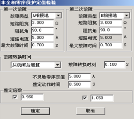 0.95倍與1.05倍的整定倍數(shù)是針對第二次故障時“非全相零序定值”的。所以微機繼電保護測試儀窗口中的“不靈敏零序定值”必須依照保護實際的整定值設(shè)置。第二次故障的“最大故障時間”應大于非全相零序保護的“整定動作時間”。
