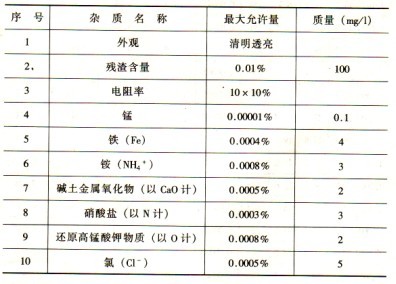 蓄電池用水的標準,我國原第一機械工業部對蓄電池用水的要求見表l-3。表l-3中雜質鐵、銨、氯等對鉛酸蓄電池危害較大,制造廠要從嚴要求。