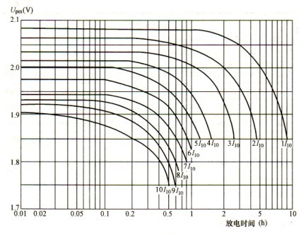 圖4—4閥控電池的放電特性曲線為增長新粒子的結晶中心,以提高充電電流的效率。 5,10~10110放電曲線比1,10~4,l0放電初期端電壓和中期端電壓變化速率變化大,其原因是高放電率下的放電電流很大,電池極化作用隨電流增加而變大。 閥控電池不同倍數率的放電特性見表4—4。表4—4 閥控電池不同倍率的放電特性曲線表(25℃)