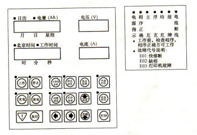 4)打印:在手動打印方式下,按一該鍵,指示燈亮后,打印機將打印一次當前充電機的工作狀況及有關參數;