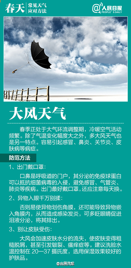 春季天氣調(diào)皮,昨天還日光融融閑賞花,今日就寒風(fēng)瑟瑟緊添衣!大風(fēng)、沙塵、陰雨等交替上演,讓感冒、過敏、關(guān)節(jié)炎等進入高發(fā)期。今天#世界氣象日#,四張圖教你應(yīng)對春季多變天氣!