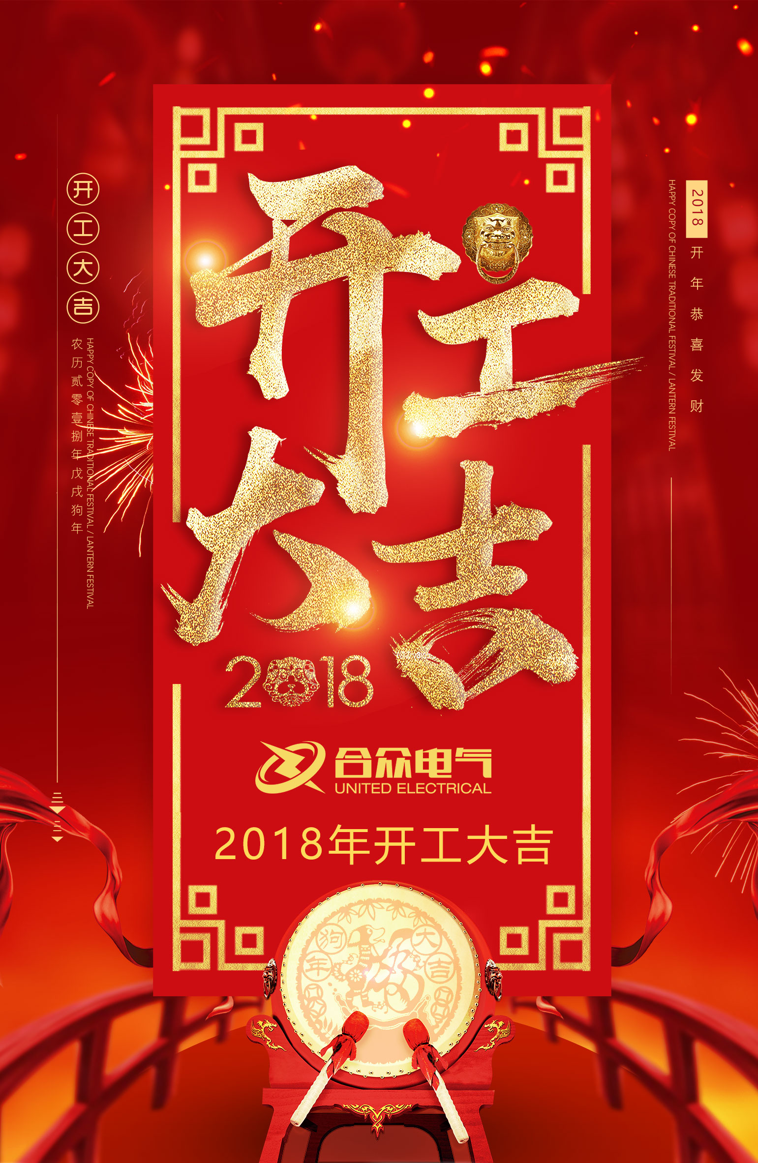伴隨著新年鐘聲的敲響,2017年已經過去,歷史的車輪駛入了2018年!2018年2月23日(正月初八)武漢市合眾電氣設備制造有限公司今天正式開工啦,各項業(yè)務進入正常運作,繼續(xù)為廣大客戶朋友們服務。在此合眾電氣向廣大合眾客戶及其家人致以新年的祝福,對在過去的一年里給予的積極合作與支持表示衷心的感謝!祝大家在新的一年里身體健康,萬事如意,希望你們一如既往的支持公司的各項工作!