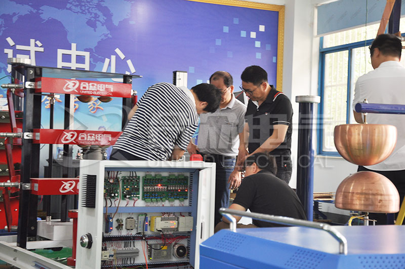 2018年6月5日,來自寶島臺灣的某電機公司客戶到訪武漢市合眾電氣,考察驗收沖擊電壓發(fā)生器、變壓器測試系統(tǒng)等設備。在各部門負責人及技術人員的陪同下,臺灣客戶參觀考察了公司生產車間,產品研發(fā)測試中心,對我司沖擊電壓發(fā)生器進行了現場測試驗收。對客戶提出的各類問題,公司領導和相關技術人員均作出了專業(yè)細致的解答。