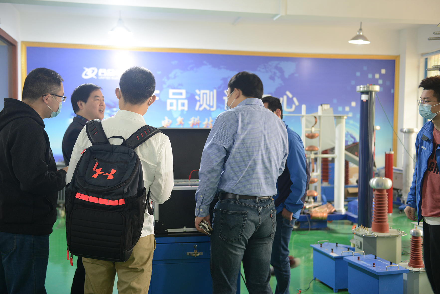 近日,來自東北電力大學的王教授、電力工程專業研究生一行到訪我司參觀交流,驗收在我司定制的電力檢測試驗產品,同時學習相關產品試驗操作方法,此次驗收的主要產品包括:變頻串聯諧振耐壓試驗裝置,沖擊電壓發生器以及相關試驗配套產品。