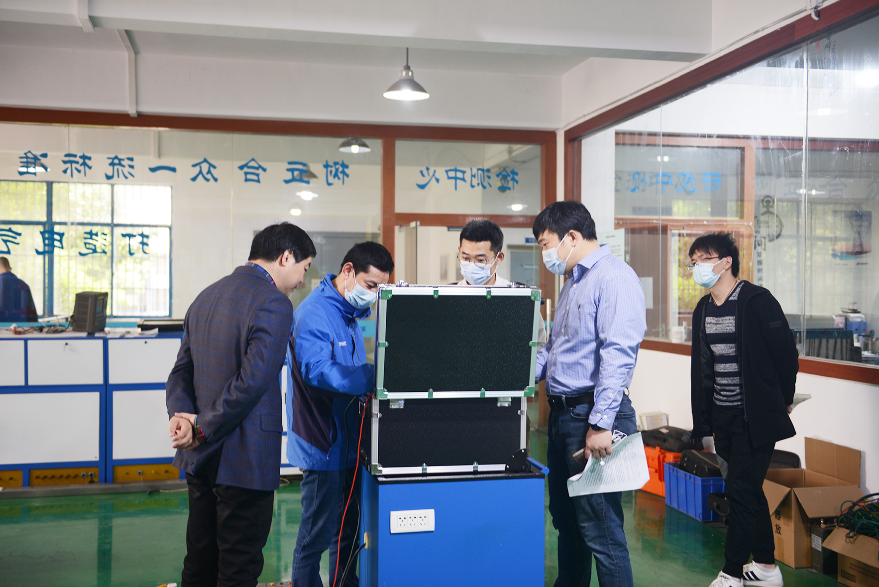 王教授一行先參觀了我司生產車間的變頻串聯諧振的生產流程和相關產品檢測技術設備,對現場井然有序的生產、嚴謹規范的工藝和實時過程檢驗質量控制給予了充分的肯定。隨后來到我司產品測試中心,驗收相關產品,并現場學習,試驗操作使用。