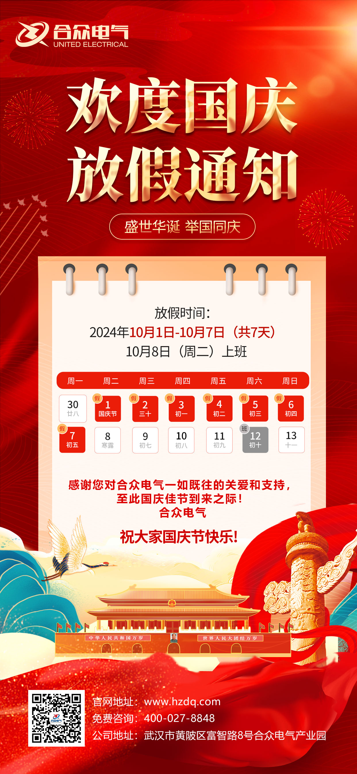 武漢市合眾電氣2024年國(guó)慶節(jié)放假通知