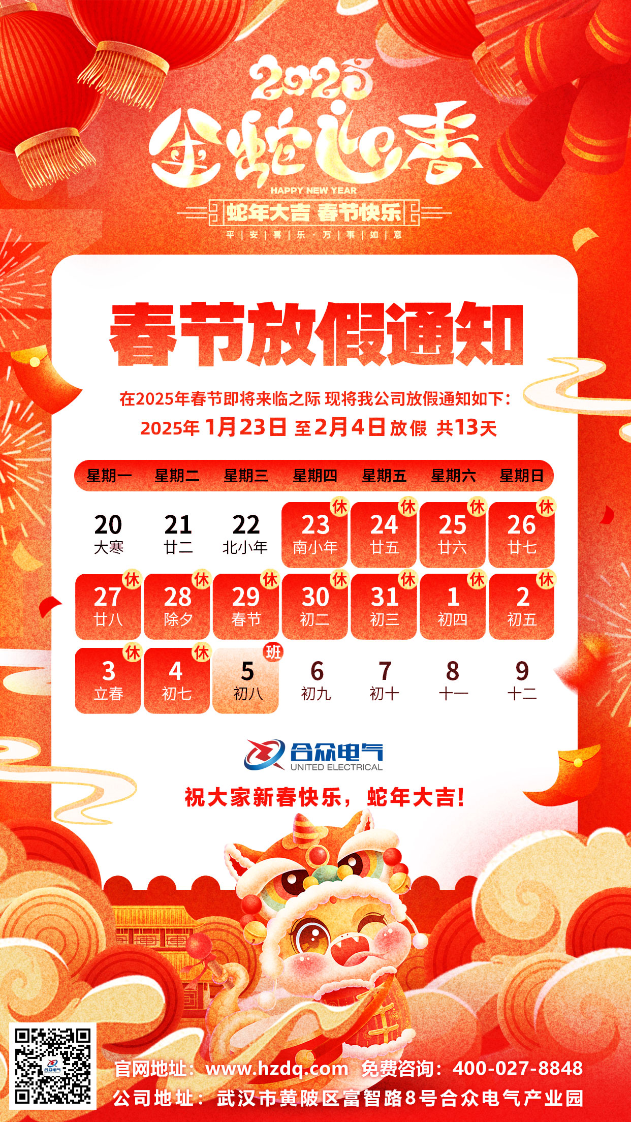 武漢市合眾電氣2025年春節(jié)放假通知